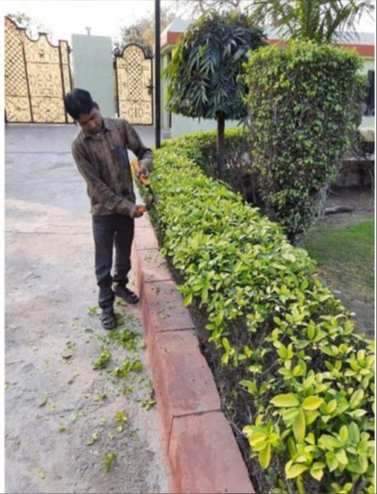 – ثم يقومون بتنظيف جميع الأشجار والزهور الموجودة عند المدخل من الأوراق الميتة والأوساخ العالقة بها.